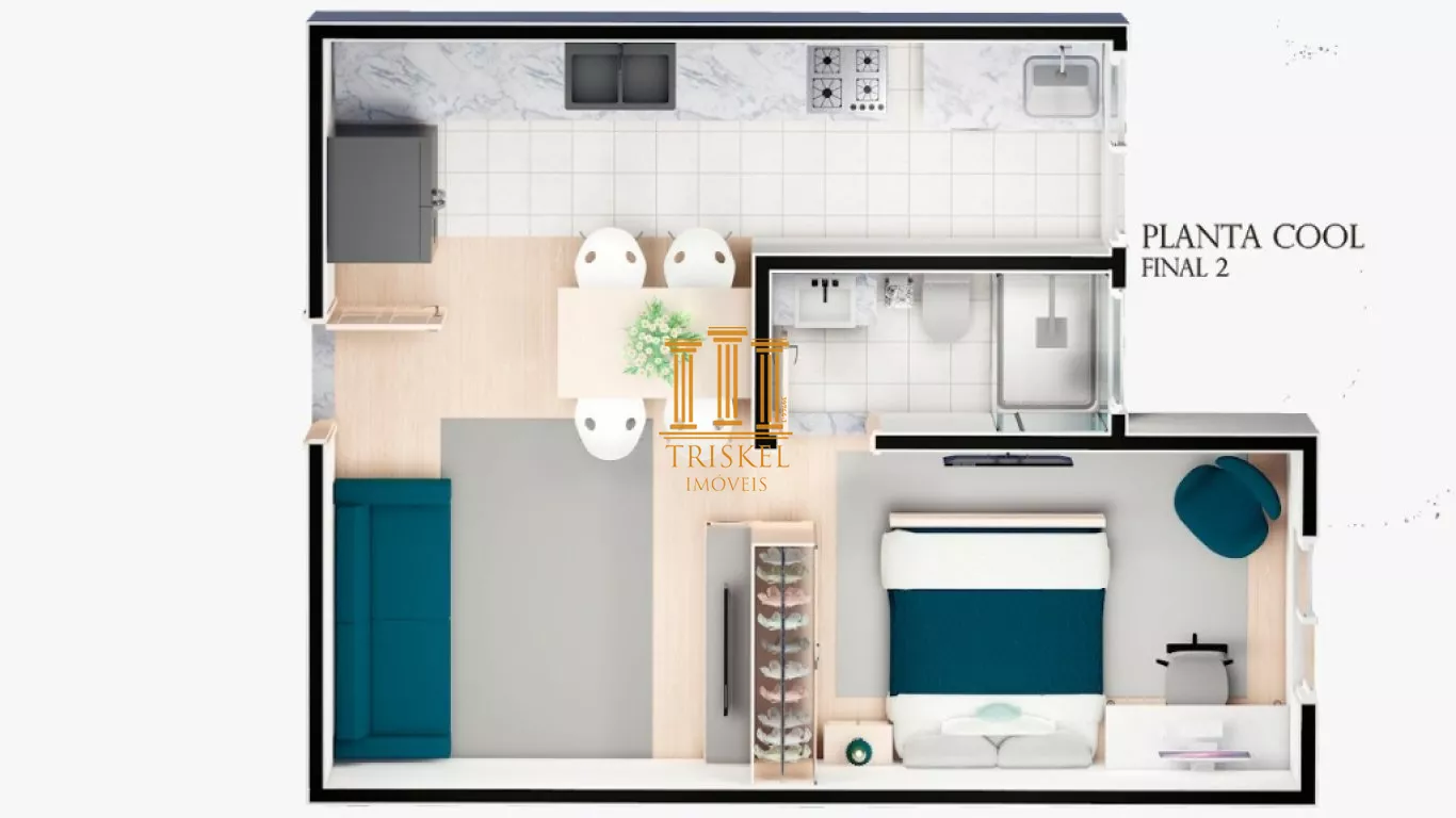- 35 m² com 1 dormitório e cozinha americana;