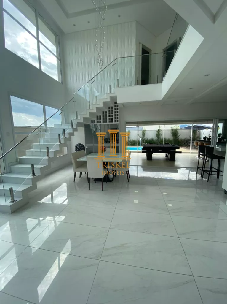 Casa em condomínio Ouro Ville em Taubaté. Sendo 3 suítes 1 escritório Lavabo Banheiro social Pé direito duplo 6 pontos de ar condicionado Escada e mármore branco Área gourmet Integrada Piscina com cascata Suíte master com sacada, closet e hidro. 3 suítes com sacada Garagem para 4 carros
