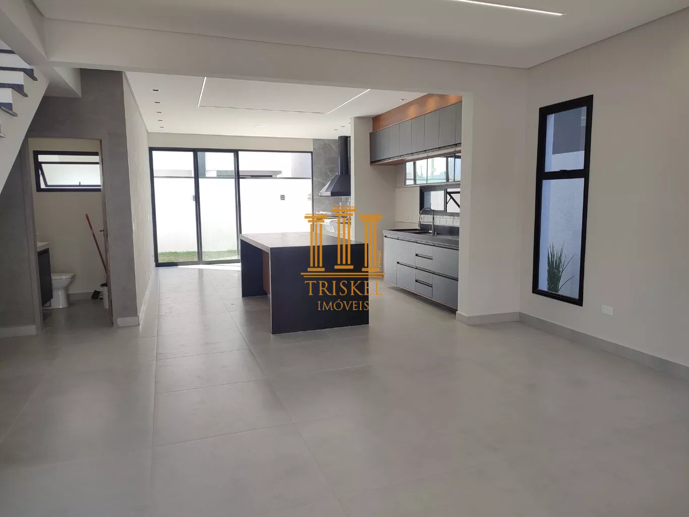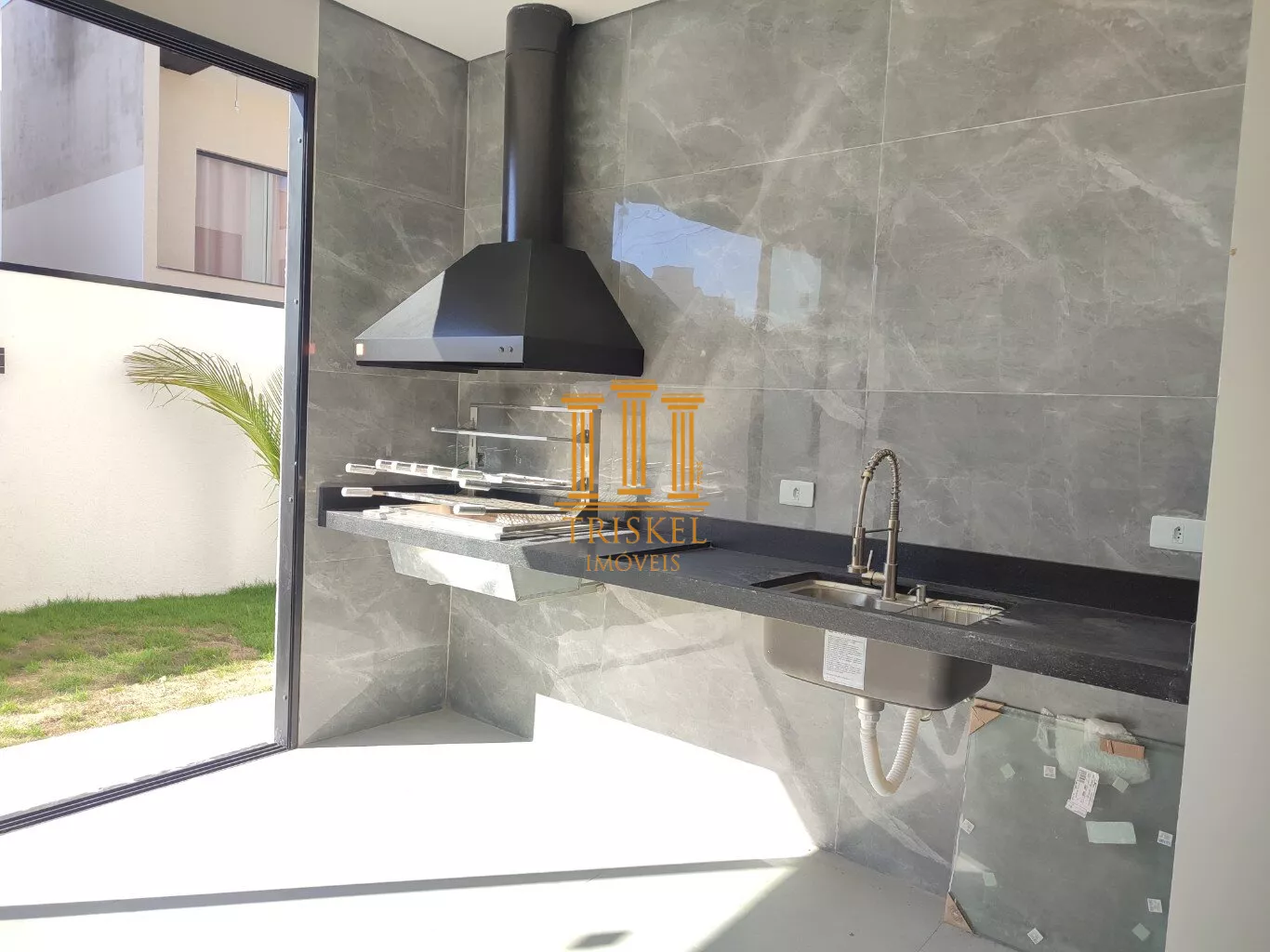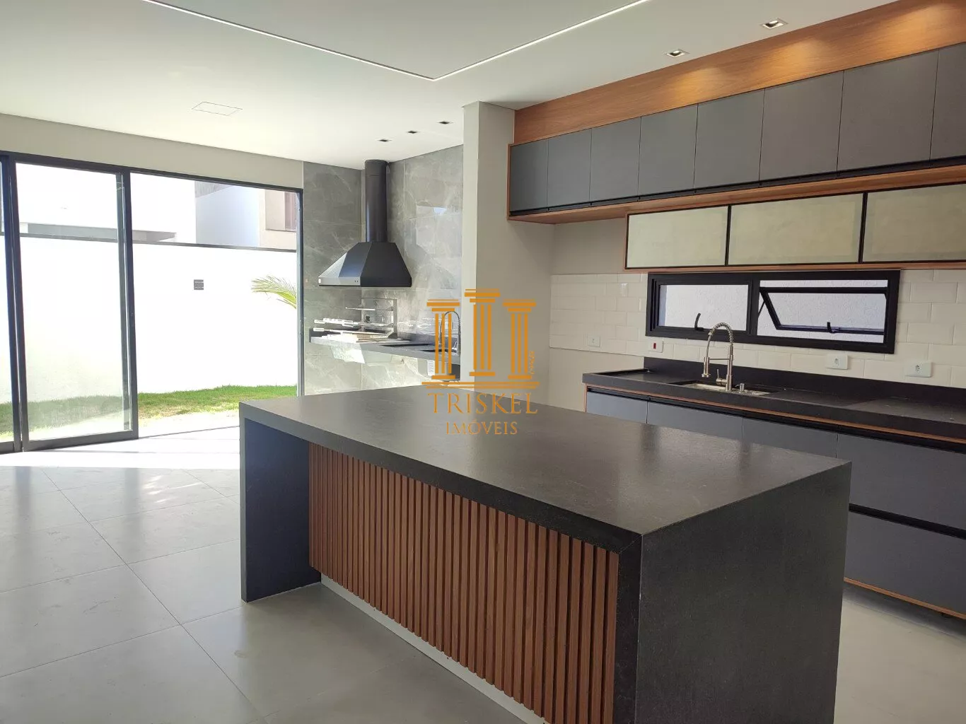Para o lazer, a casa conta com uma área gourmet integrada a cozinha.